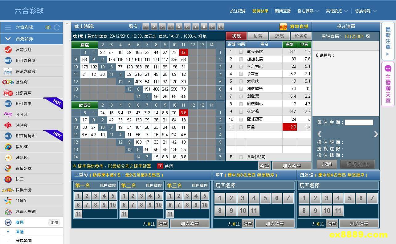 位置Q:單場賽事中,前三名獲勝的兩匹馬組合。單場下注,最少選擇2匹馬號。